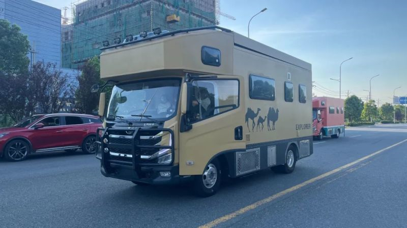 车身采用沙漠黄的颜色搭配黑色字母和骆驼图案,让人眼前一亮。车身右侧配有4米遮阳棚,二级电动踏板,外置抽拉花洒,超大储物舱。