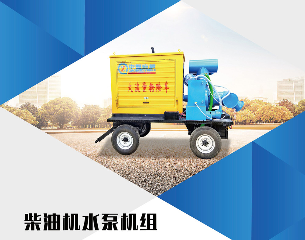 大流量节能拖挂式防洪抢险泵车使用柴油机带动自吸泵:该泵组集自吸和无堵塞排污于一体,采用柴油机驱动轴向回流外混式,并通过泵体、叶轮流道的设计,使用时不需要安装底阀和灌引水。泵组可吸排含有大颗粒固体和长纤维杂质液体,可广泛适用于市政排污及防涝工程、农业灌溉等。该泵组具有结构简单、自吸性能好、排污能力强、节能、使用维修方便、一体式户外型可移动设计等特点。